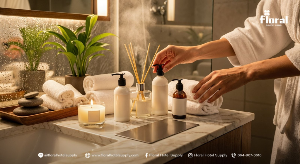 การสร้าง ของใช้สปาแบรนด์ตัวเอง เป็นการลงทุนที่ช่วยยกระดับภาพลักษณ์ธุรกิจ เพิ่มความหรูหรา และสร้างความแตกต่างอย่างยั่งยืน ไม่ว่าจะเป็น branded spa products, customized spa kit, หรือ ของใช้สปาปรับแบรนด์ได้ ล้วนเป็นกุญแจสำคัญในการสร้างแบรนด์ให้แข็งแรงและน่าจดจำ หากคุณกำลังมองหาพาร์ทเนอร์ที่น่าเชื่อถือ Floral Hotel Supply พร้อมช่วยออกแบบและผลิตสินค้าสปาที่สะท้อนตัวตนของคุณได้อย่างสมบูรณ์แบบ รองรับการออกแบบบรรจุภัณฑ์และการใส่โลโก้บนสินค้าสปา ใช้วัตถุดิบคุณภาพสูง ปลอดภัย และได้มาตรฐานสากล ให้บริการครบวงจร ตั้งแต่แนวคิดจนถึงผลิตภัณฑ์สำเร็จรูป