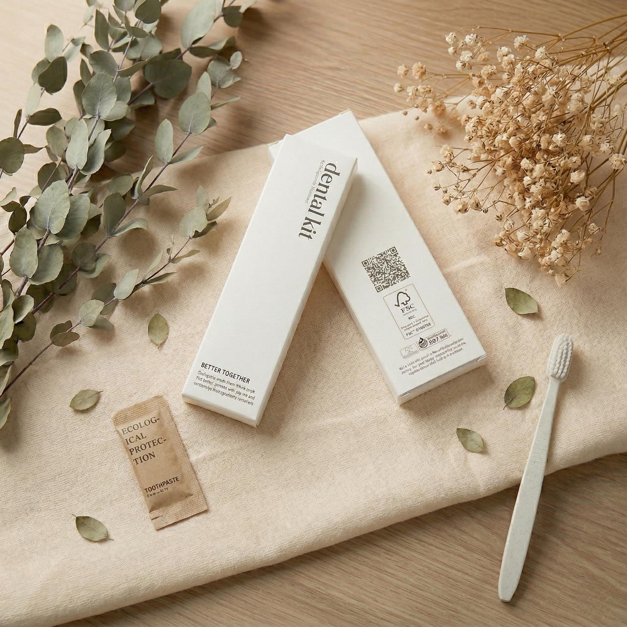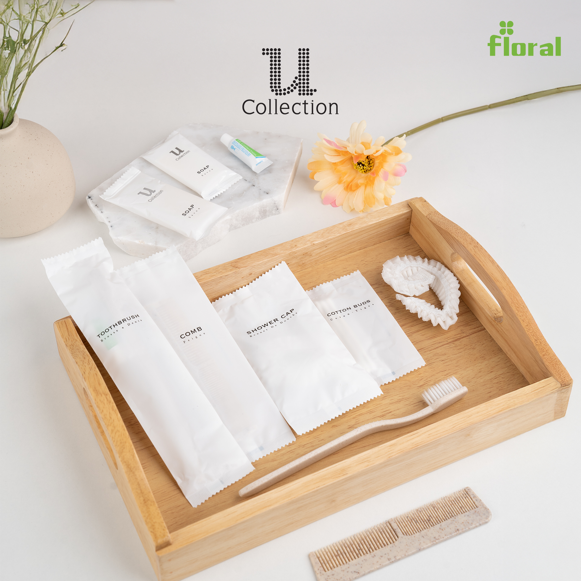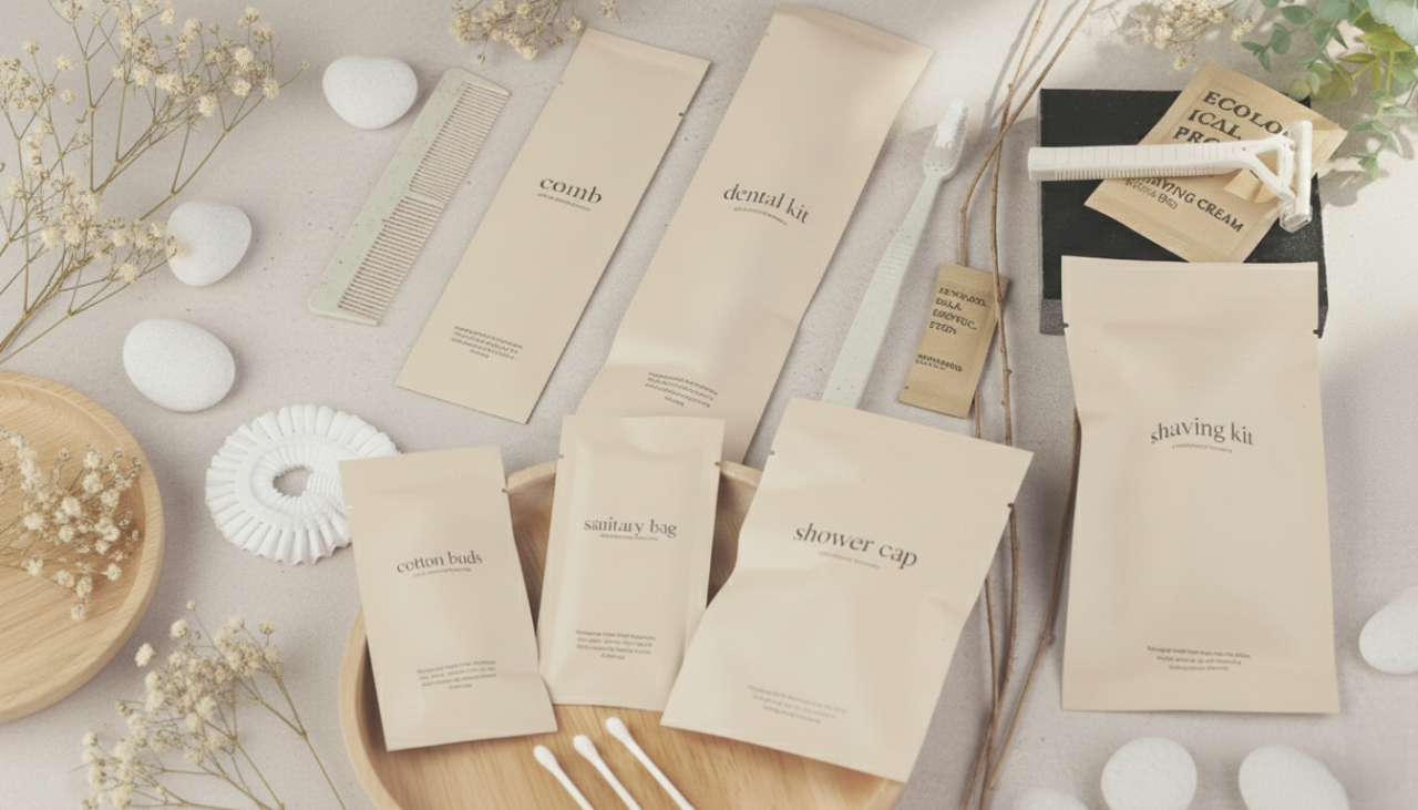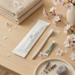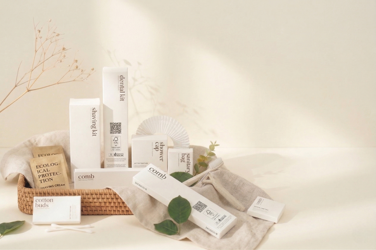 ชุดของใช้ดีไซน์มินิมอลที่มาพร้อมคอนเซปต์รักษ์โลก “Let’s Go Green” ครบครันด้วย ชุดแปรงสีฟัน คัตตอนบัด ตะไบ หมวกคลุมผม และหวี ในซองกระดาษคราฟท์สุดละมุน ช่วยยกระดับที่พักให้ดูพรีเมียมและใส่ใจสิ่งแวดล้อม สร้างความประทับใจที่ยั่งยืนให้แก่แขกผู้เข้าพัก เปลี่ยนรายละเอียดเล็กๆ ในห้องน้ำให้กลายเป็นสัมผัสที่น่าจดจำและเป็นมิตรต่อธรรมชาติอย่างลงตัว