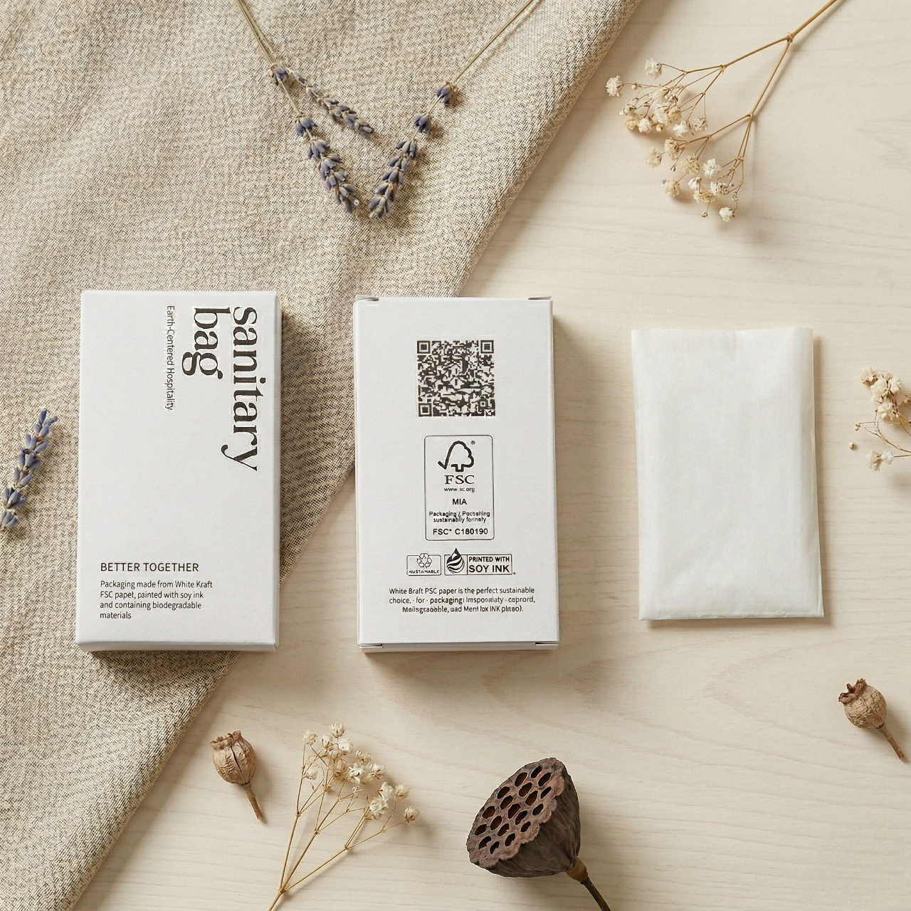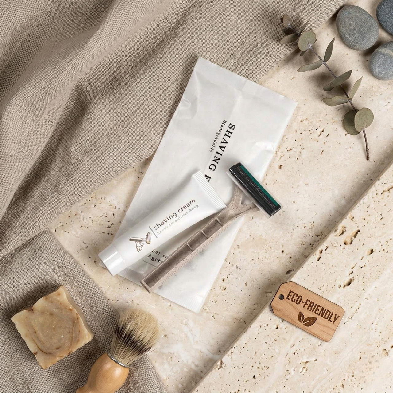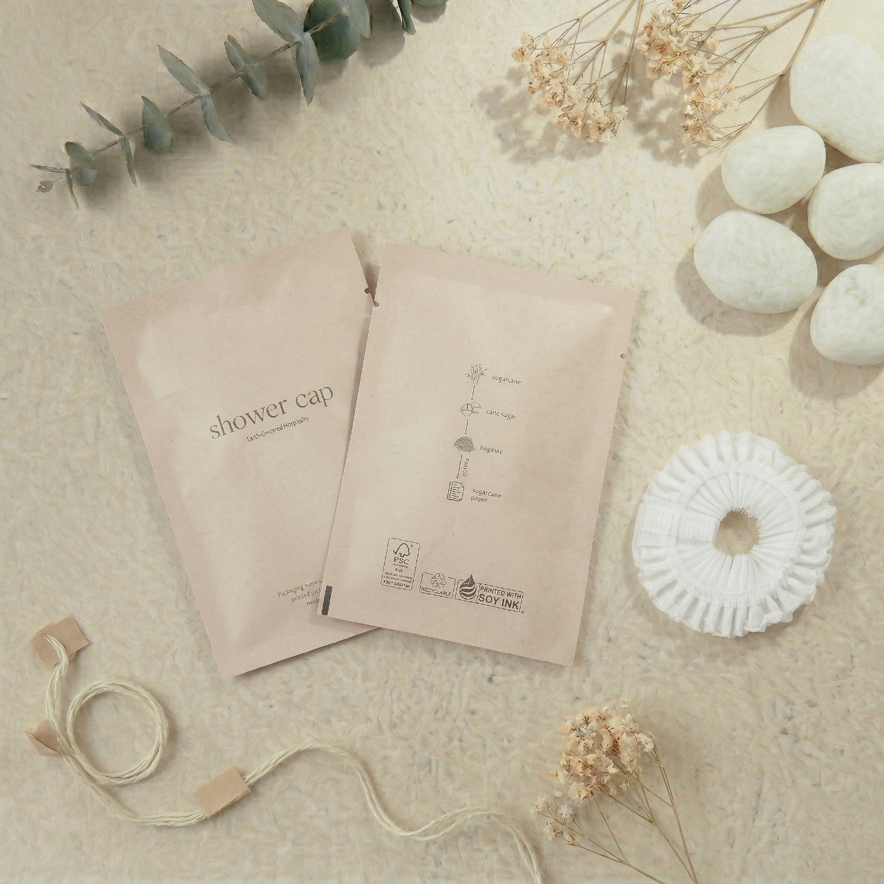 ยกระดับมาตรฐานโรงแรมยุคใหม่ด้วยชุดของใช้ในห้องพักจากใยชานอ้อยที่มุ่งเน้นแนวคิดความยั่งยืนและการดูแลโลกเป็นหัวใจสำคัญ ภายในเซ็ตประกอบด้วยอุปกรณ์ครบครัน ทั้งชุดแปรงสีฟัน ชุดโกนหนวด หวี คัตตอนบัด หมวกคลุมผม และถุงใส่ผ้าอนามัยย่อยสลายได้ บรรจุภัณฑ์ผลิตจากกระดาษชานอ้อยเนื้อสัมผัสธรรมชาติ พิมพ์ด้วยหมึกถั่วเหลืองและใช้กระดาษมาตรฐาน FSC ที่เป็นมิตรต่อสิ่งแวดล้อม ดีไซน์มินิมอลโทนสีครีมสะอาดตาช่วยสร้างบรรยากาศที่ผ่อนคลายและสะท้อนถึงภาพลักษณ์ความพรีเมียมที่ใส่ใจในทุกรายละเอียดของแขก นี่คือทางเลือกที่สมบูรณ์แบบสำหรับการเปลี่ยนทุกการเข้าพักให้เป็นประสบการณ์รักษ์โลกที่น่าประทับใจและช่วยลดปริมาณขยะพลาสติกอย่างแท้จริง