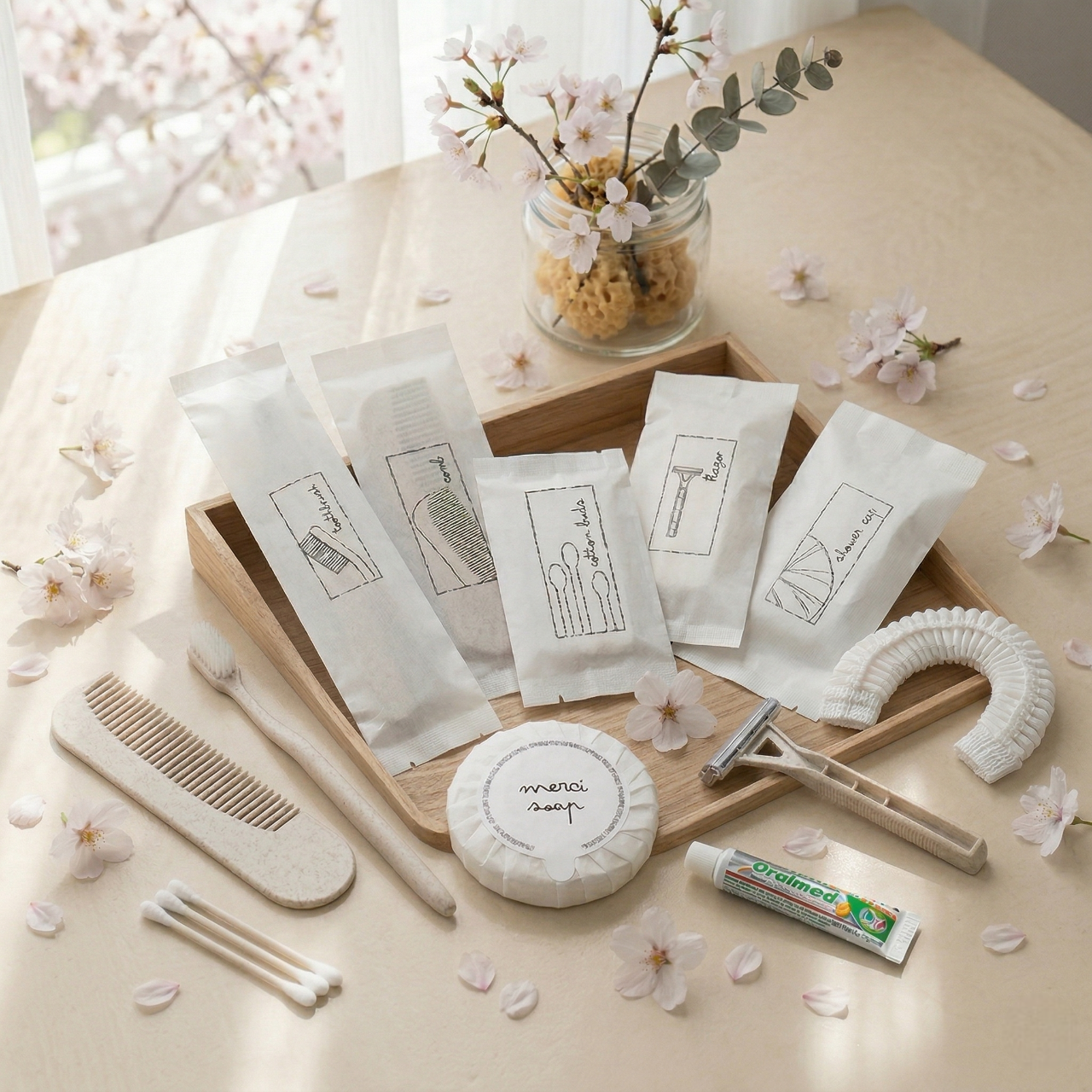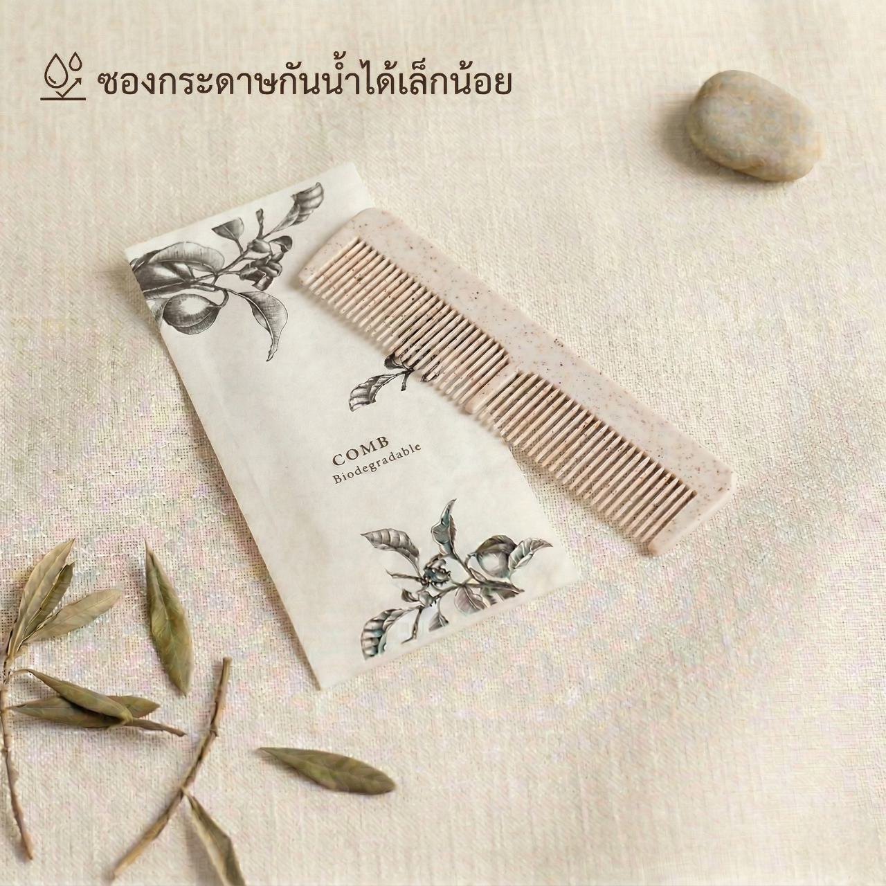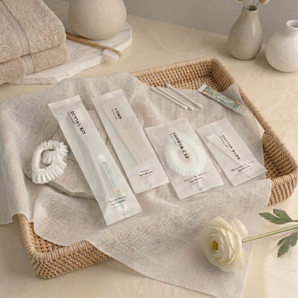 ยกระดับห้องพักด้วย Merci Amenities ในซองเส้นใยดีไซน์มินิมอลที่กันน้ำได้เล็กน้อย ปกป้องของใช้จากความชื้น ครบครัน 6 ไอเทม: หวี, คัตตอนบัด, ชุดแปรงสีฟัน, มีดโกน, หมวกคลุมผม และสบู่ บรรจุภัณฑ์เรียบหรูดูพรีเมียม ช่วยเสริมภาพลักษณ์ความใส่ใจและทันสมัยให้โรงแรมของคุณ มอบสัมผัสที่เป็นธรรมชาติพร้อมการใช้งานที่ตอบโจทย์จริงในพื้นที่ห้องน้ำ เปลี่ยนรายละเอียดเล็กๆ ให้เป็นความประทับใจที่สมบูรณ์แบบสำหรับแขกคนสำคัญ