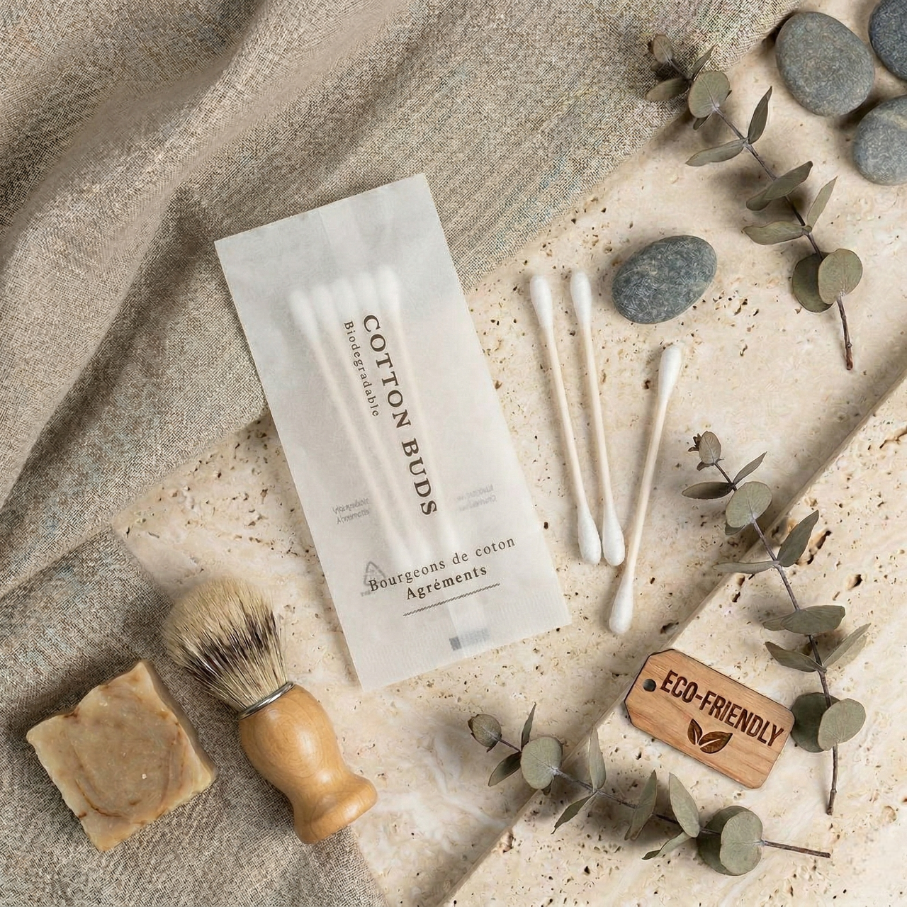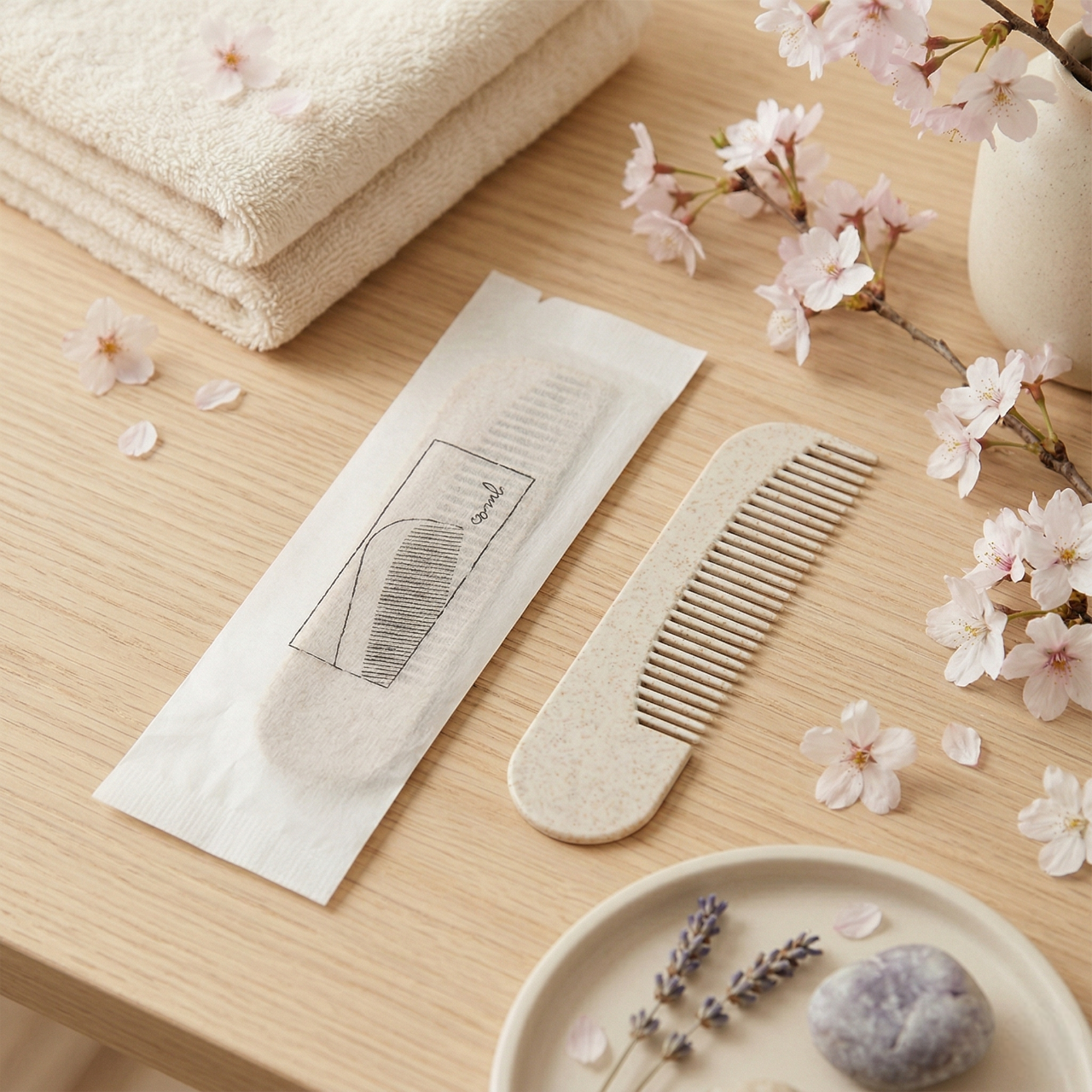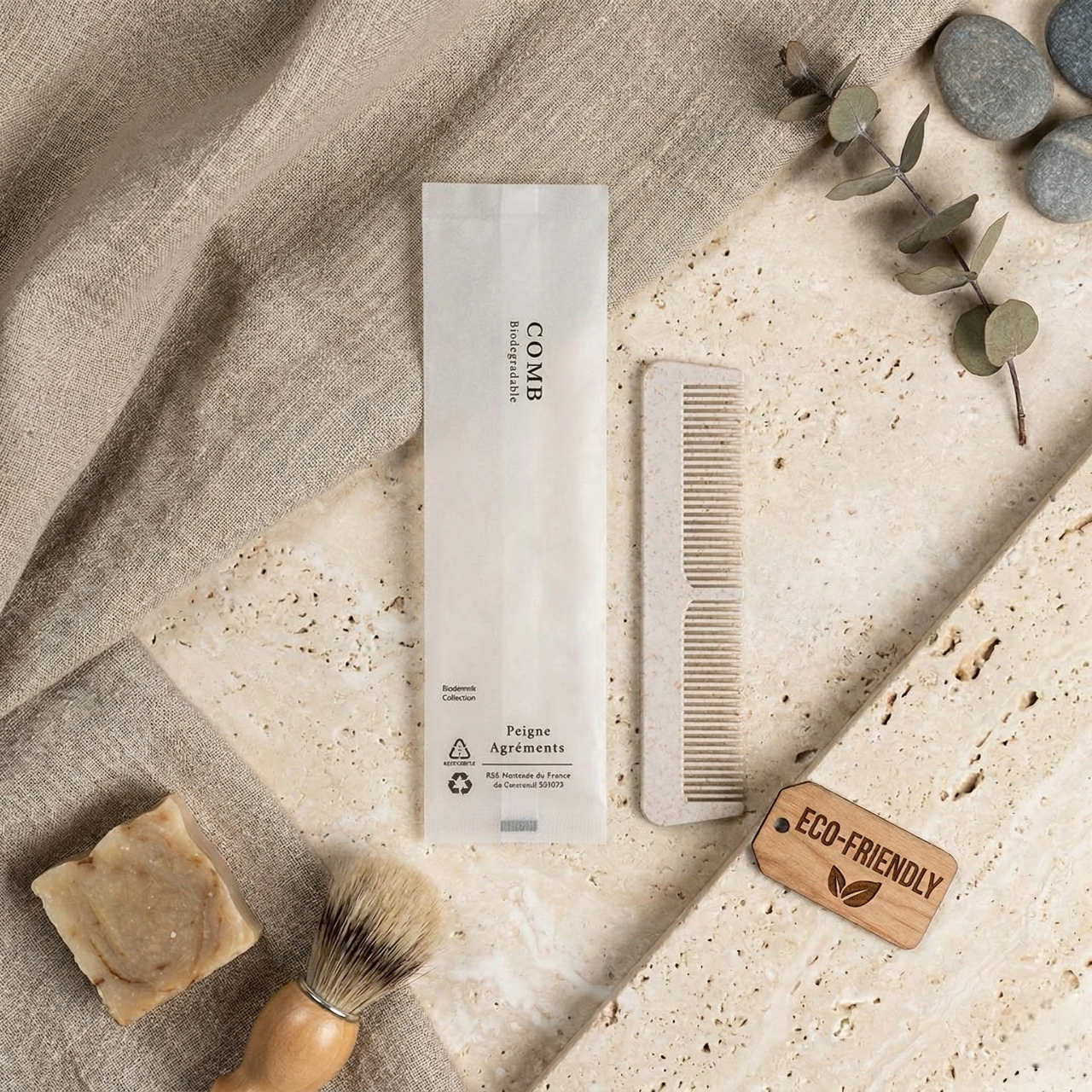 ยกระดับห้องพักด้วย Merci Amenities ในซองเส้นใยดีไซน์มินิมอลที่กันน้ำได้เล็กน้อย ปกป้องของใช้จากความชื้น ครบครัน 6 ไอเทม: หวี, คัตตอนบัด, ชุดแปรงสีฟัน, มีดโกน, หมวกคลุมผม และสบู่ บรรจุภัณฑ์เรียบหรูดูพรีเมียม ช่วยเสริมภาพลักษณ์ความใส่ใจและทันสมัยให้โรงแรมของคุณ มอบสัมผัสที่เป็นธรรมชาติพร้อมการใช้งานที่ตอบโจทย์จริงในพื้นที่ห้องน้ำ เปลี่ยนรายละเอียดเล็กๆ ให้เป็นความประทับใจที่สมบูรณ์แบบสำหรับแขกคนสำคัญ