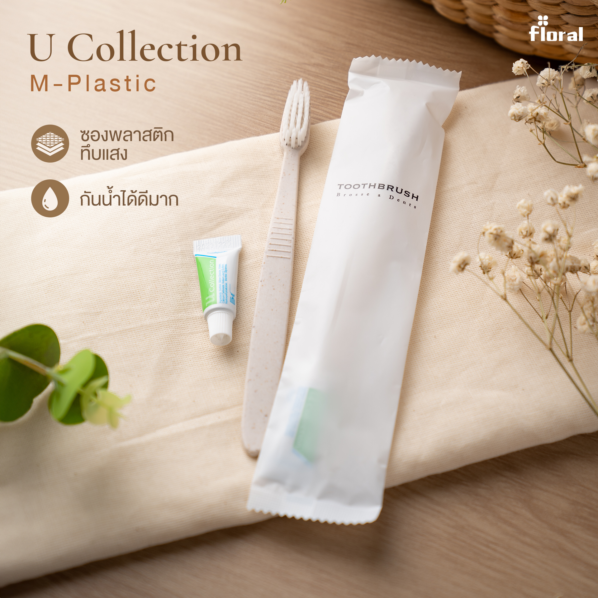 U Collection Amenities ดีไซน์มินิมอลในซองพลาสติกสีขาวทึบแสง กันน้ำได้ 100% ยกระดับความสะอาดด้วย 6 ไอเทมหลัก: แปรงสีฟัน, หมวกคลุมผม, หวี, คัตตอนบัด และสบู่ (8ก./15ก.) วัสดุพรีเมียม ทนทานต่อความชื้นในห้องน้ำ ช่วยรักษาคุณภาพสินค้าให้สมบูรณ์ก่อนถึงมือแขก สินค้ามีสต็อกพร้อมส่งทันที ไม่ต้องรอผลิต ตอบโจทย์การบริหารจัดการสต็อกที่รวดเร็ว