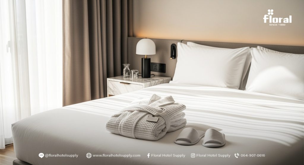 💡 เคล็ดลับ: โรงแรมระดับพรีเมียมมักเลือก Free Size (One Size Fits Most) สำหรับความสะดวกในการจัดการ แต่โรงแรมหรูหรือรีสอร์ท 5 ดาวจะมีหลายไซส์ เพื่อสร้างประสบการณ์เฉพาะตัวให้แขก