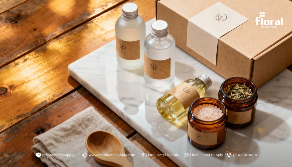 การเลือกใช้ ของใช้สปารักษ์โลก ไม่เพียงแต่ช่วยลดผลกระทบต่อสิ่งแวดล้อม แต่ยังสร้างความแตกต่างให้ธุรกิจสปาและโรงแรม ด้วยผลิตภัณฑ์ที่ปลอดภัย ย่อยสลายได้ และสื่อสารถึงความยั่งยืนได้อย่างแท้จริง หากคุณกำลังมองหาผู้ผลิตที่เชื่อถือได้ Floral Hotel Supply คือพันธมิตรที่พร้อมพัฒนาผลิตภัณฑ์ eco-friendly spa products, biodegradable spa kit, และ sustainable wellness products ที่ตอบโจทย์ทั้งตลาดและสิ่งแวดล้อม ช่วยโรงแรม รีสอร์ท และสปา สร้างภาพลักษณ์ที่ทันสมัยและรักษ์โลก